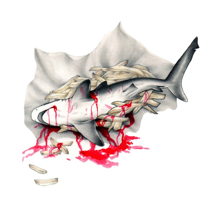 The True Cost Of Your Fish & Chips What’s the true cost of your fish & chips? 50 million sharks are killed as by-catch in commercial fisheries every year. Share this: Share on X (Opens in new window) X Share on Facebook (Opens in new window) Facebook Like Loading... Related